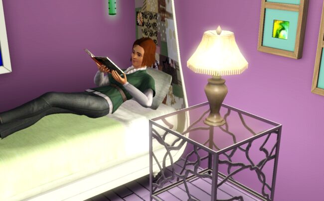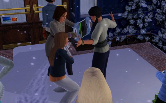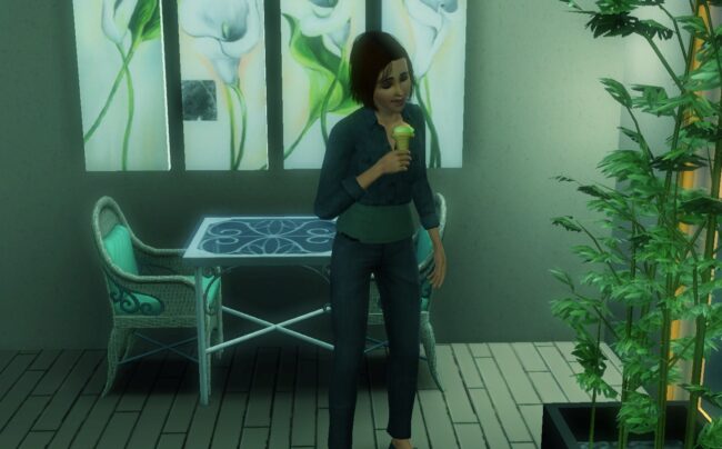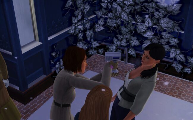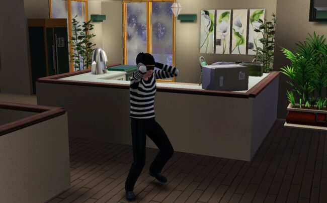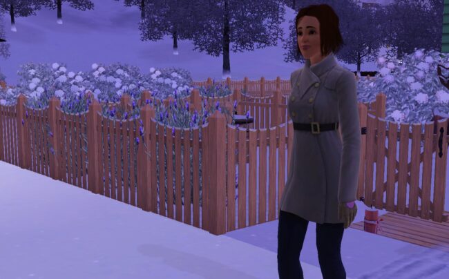 Saturday night there is a burglary in Ivy’s house. She wakes up to the alarm going off. She rushes out into the hallway – and sees the thief standing there. Luckily, the police are on the stairs. And then the author will interject that it is really nice to see the police and their cars (we don’t see any of that in Sims 4)