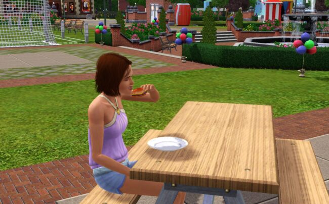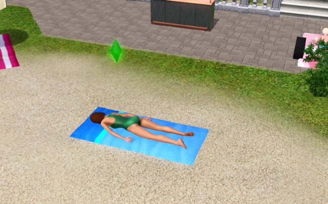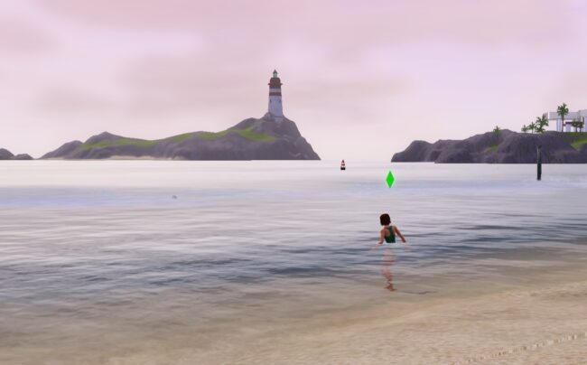 When she has the day off she feels hungry. But there is a small cafe behind the hospital, so she goes there to get some food. Afterwards she is going to swim in the lovely clear sea that surrounds Sunset Valley.
