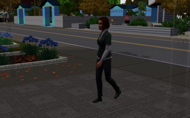 She hopes to meet other Sims and make friends with them, although she knows she will have to work hard to achieve her goal.