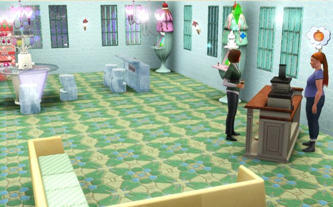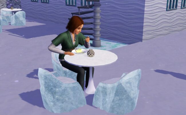 After work – she goes to the “sweet mouth cafe” – which has just been opened in Sunset Valley – here she gets a snack before going home.